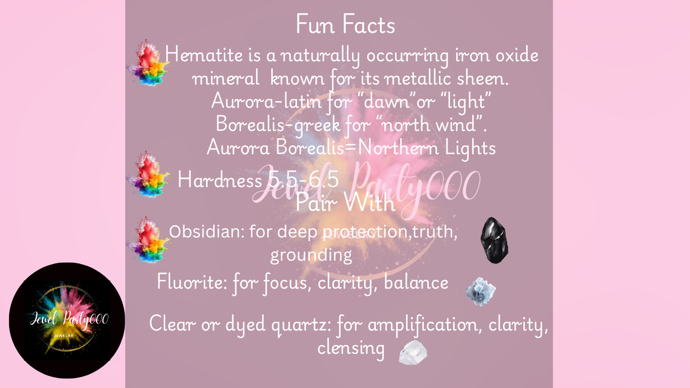 - Hematite stone with aurora borealis coating